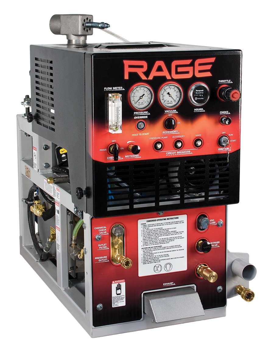 Getting started in carpet cleaning? Need to expand your business at a lower cost? The Rage is the right choice! Features premium components, durable construction and the state-of-the art engineering for performance and reliability. Cerakote treatment on exhaust components reduces truckmount and van interior temps.